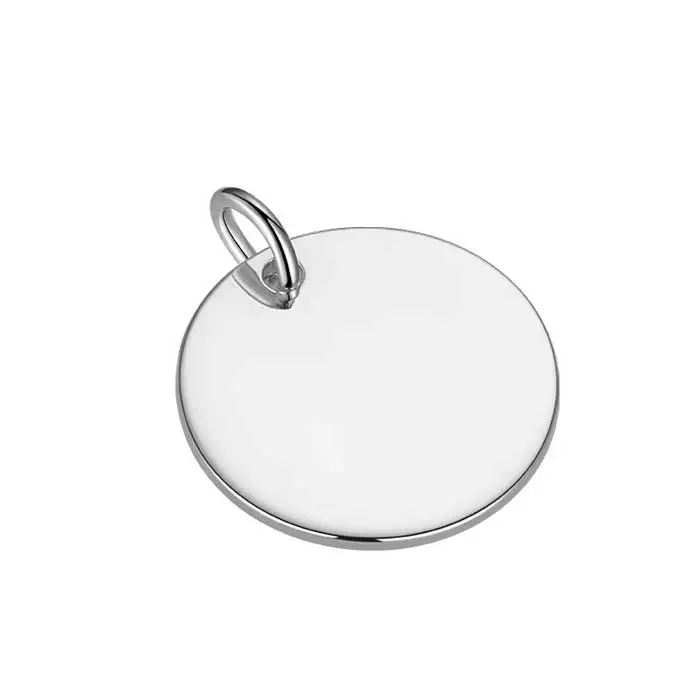 Klassinen ja ajaton hopeinen laattariipus, joka sopii täydellisesti personoitavaksi omalla kaiverruksella. Riipuksen pinta on sileä ja kiiltävä, tarjoten ihanteellisen pohjan esimerkiksi nimelle, nimikirjaimille tai päivämäärälle. Sen minimalistinen ja selkeä muotoilu tekee siitä monikäyttöisen korun, joka sopii niin yksinään käytettäväksi kuin yhdisteltäväksi muiden kaulakorujen kanssa. Voit valita riipuksen halkaisijan neljästä eri kokovaihtoehdosta: 12 mm, 15 mm, 18 mm tai 20 mm. Laatan 1,2 mm vahvuinen runko antaa sille miellyttävän jämäkkyyden ja laadukkaan tunnun. Riipus on valmistettu nikkelittömästä 925 sterling-hopeasta. Huomioithan, että tuote myydään ilman ketjua, joten voit yhdistää sen juuri omaan tyyliisi sopivaan ketjuun.