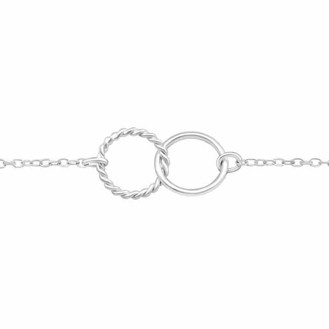 Naisten hopeinen rannekoru kahdella toisissaan kiinni olevalla tyylikkäällä lenkillä. Koruosan koko on 19 x 8 mm. Ranneketjun pituus on säädettävissä pituuksiin 16 cm ja 18 cm. Valmistusmateriaali on laadukas nikkelitön 925 sterling hopea. Siro hopeinen käsikoru on täydellinen asuste jokapäiväiseen käyttöön!