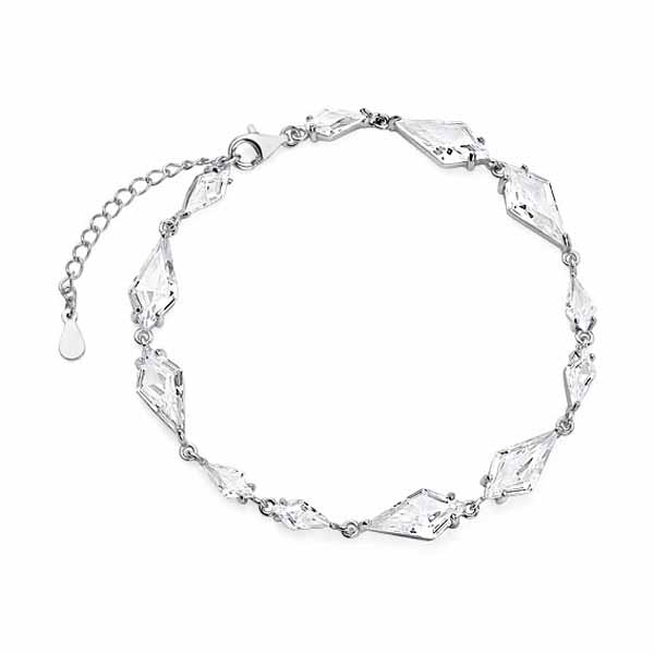 Naisten rannekoru säkenöivillä korukivillä. Hopearannekoru koostuu kauniista salmiakin muotoisista koruosista Rannekorun leveys on 6 mm. Ranneketjun pituus on säädettävissä välillä 17 cm ja 20 cm. Sopii erinomaisesti esimerkiksi hääkoruksi tai juhlakoruksi! Valmistusmateriaali on laadukas nikkelitön 925 sterling hopea. Klassinen hopeinen käsikoru on täydellinen asuste jokapäiväiseenkin käyttöön!