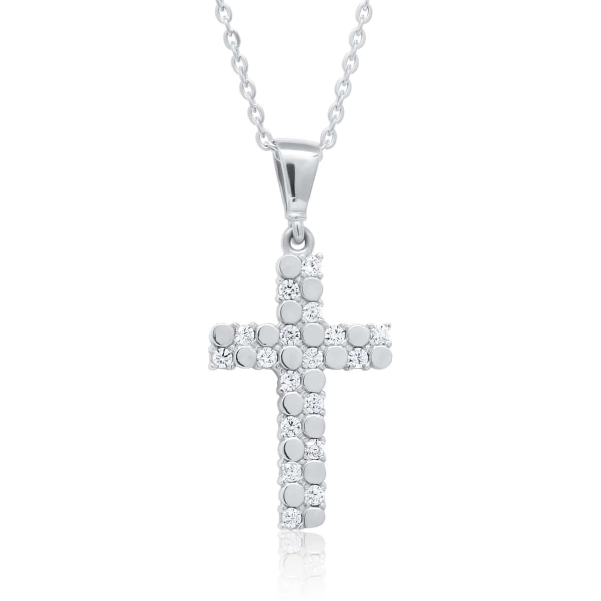 Personallisen tyylikäs hopearisti, jota koristavat kirkkaat zirkonia-korukivet. Ristin leveys on 11,5 mm ja korkeus 19 mm. Ketjun pituus on kätevästi säädettävissä välillä 40-45 cm