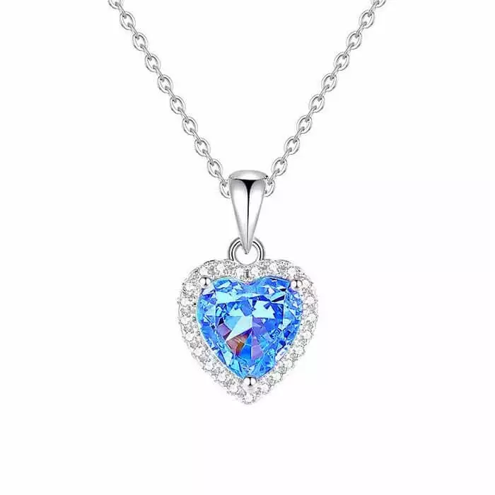 Hopeinen sydänriipus halo vaaleansininen Elegantti ja valovoimainen hopeinen sydänriipus, jonka keskellä säteilee viileän kaunis, vaaleansininen sydämenmuotoinen zirkonia. Kirkkaiden zirkoneiden... Lue lisää