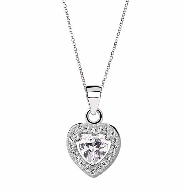 Hopeinen sydänkaulakoru säihkyvillä kirkkailla zirkonia-korukivillä! Sydänriipuksen koko on 9 x 15 mm. Ketjun pituus on 45 cm. Valmistusmateriaali on laadukas nikkelitön 925 sterling hopea. Siro hopeariipus kulkee arjessa ilahduttaen mukana!