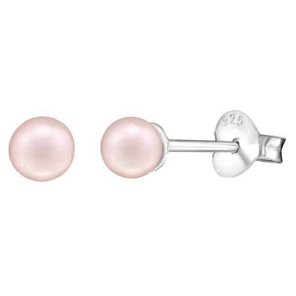 Hopeiset helmikorvakorut vaaleanpunaisella synteettisellä helmellä. Helmen koko 4 mm.