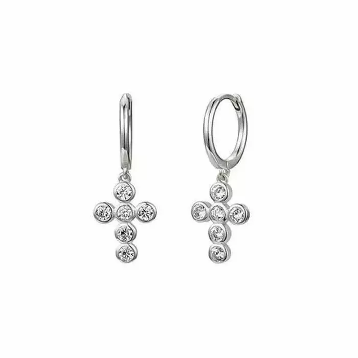 Hopeiset korvarenkaat roikkuvat ristit Hopeakorvarenkaat roikkuvilla säkenöivillä risteillä. Korvakorun kokonaiskorkeus roikkuvan zirkonia-korukivin koristellun ristin kanssa on noin 22 mm.... Lue lisää