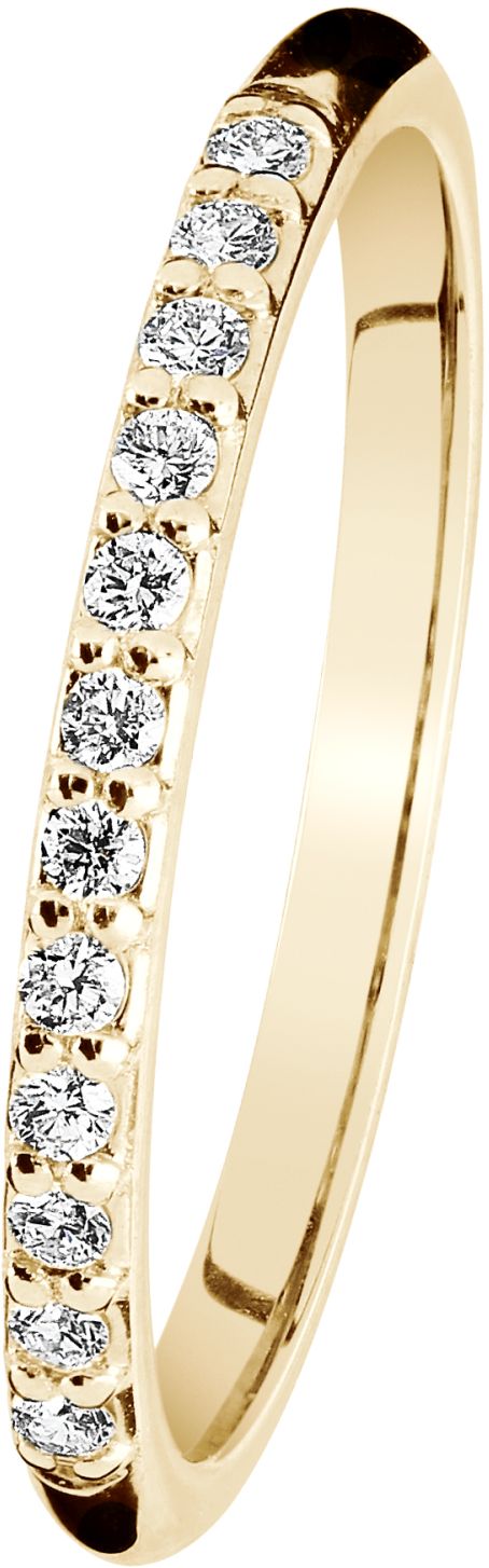 Kotimainen Kohinoor Rosa-timanttisormus. Kaunis rivitimanttisormus on samalla herkkä ja vahva. Valkokultaisessa sormuksessa loistaa kaunis rivi timantteja 12 x 0,01 ct, yhteensä 0,12 ct. Rungon leveys on 1,4 mm ja se on valmistettu 14 karaatin keltakullasta. Saatavilla myös valkokultaisena.