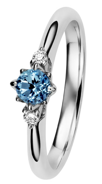- Timantti: 2 x 0,02 ct H/SI + 4 mm sininen topaasi