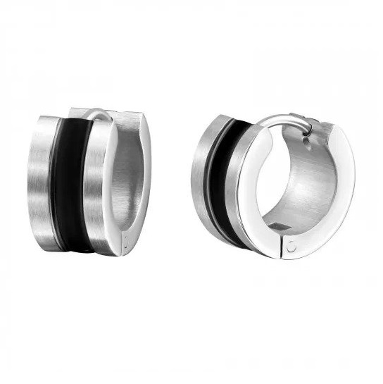 Miesten teräskorvarenkaat mustalla raidalla. Nämä tyylikkäät teräksiset korvarenkaat ovat halkaisijaltaan 13 mm ja leveydeltään 6 mm. Rengaskorvakorujen valmistusmateriaali on laadukas ja kestävä ruostumaton teräs eli kirurginteräs. Korvarenkaissa on kätevä saranakiinnitys. Klassisen malliset saranakorvakorut sopivat niin miehelle kuin naisellekin!