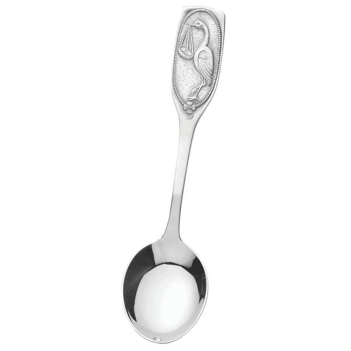 521-632 kummilusikassa on haikaran kuva etupuolella ja lusikan takapuolelle saa kaiverrettua syntymätiedot.