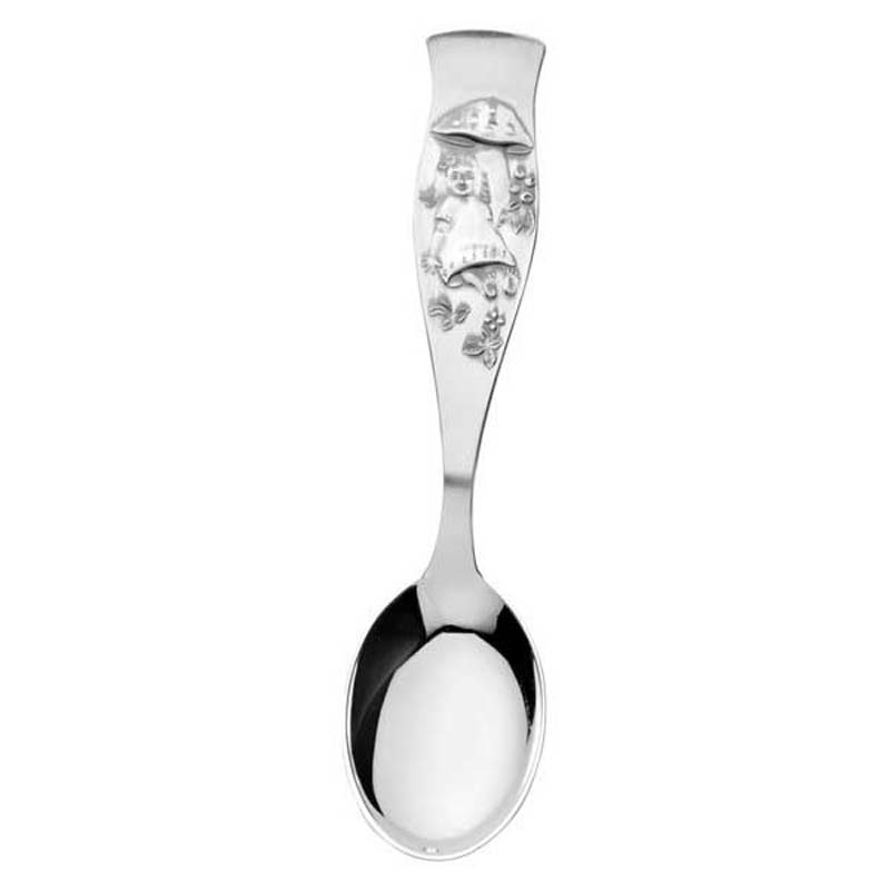Suloisen hopealusikan takapuolelta löytyvät kaiverruspaikat syntymäpäivälle, ajalle, painolle sekä pituudelle.