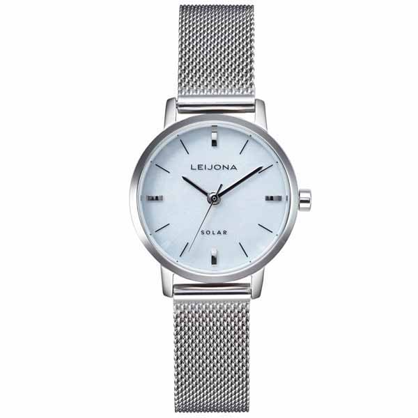 Leijona Eira Solar Steel & Steel 5172-4698 mallin vaalea kellotaulu ja teräksinen mesh-ranneke luovat trendikkään kokonaisuuden. Kellon rungon materiaali on kestävä ruostumaton teräs. Kellotaulun leveys on 26 mm ja paksuus 8,2 mm. Kellotaulua suojaa mineraalilasi. Kellon koneistona sykkii Epson AS01 solar-koneisto, joka ottaa käyntivoimansa auringonvalosta sekä keinovalosta. Koneiston käyntivara on noin 4 kuukautta. Kello on roiskevesitiivis 50 metriä / 5 bar.