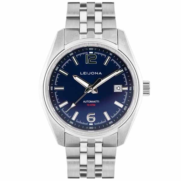 Leijona Kataja 5012-2562 mallissa on kestävä teräksinen runko sekä ranneke. Ranneke on leveydeltään 20 mm ja siinä on kätevä perhoslukko. Kellossa on sininen kellotaulu selkeillä hopea-valkoisilla luminoiduilla indekseillä ja viisareilla. Kellotaulun leveys on 39 mm ja paksuus 12,7 mm. Kellotaulua suojaa laadukas safiirilasi ja taulusta löytyy päivyri kello kolmen kohdalta. Kellon koneistona sykkii Miyota 8215-automaattikoneisto, jonka käyntivara on 42 tuntia. Kellon käyntiä voi seurata läpinäkyvän takapohjan läpi. Kellossa on lisäksi ruuvilukittava nuppi. Kello on 10 bar vesitiivis, eli se kestää jopa pintauintia!