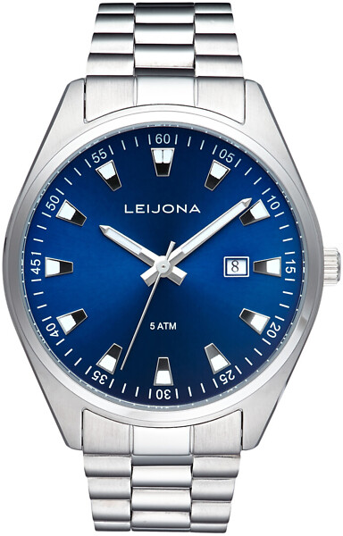 Leijona Luoto miesten rannekello teräsrannekkeella, jossa on 40 mm sininen kellotaulu. Kello on suojattu roiskevedeltä. Leijona kelloille myönnetään kahden vuoden takuu!