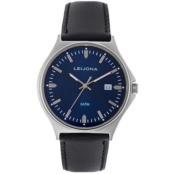 Klassinen miesten rannekello mustalla nahkarannekkeella. Pielavesi kellossa on 39 mm leveä sininen kellotaulu sekä selkeälukuinen päivyri kello kolmen kohdalla. Kello on vesitiivis 50 metriin asti!