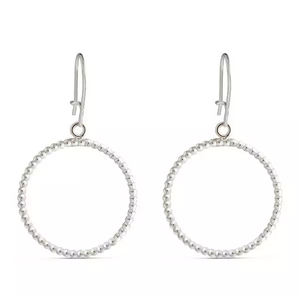 Hopeiset kehän muotoiset korvakorut, jotka koostuvat useista pienistä toisiinsa kiinnitetyistä hopeisista helmistä. Korvakorun koko on 23 mm. Korvakoruissa on kätevä lukollinen koukkukiinnitys. Yhdistele Helmikki korvakorut sarjaan kuuluvien kaulakorun ja rannekorun kanssa!