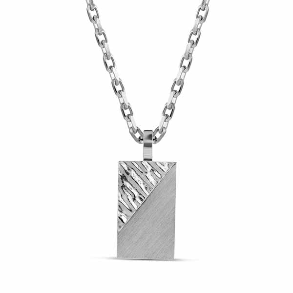 Miesten hopeinen laattariipus tyylikkäällä kuvioinnilla. Liekki hopealaatan pinta on osin sileä, osin koristeltu liekkiä muistuttavalla kuvioinnilla. Laatan koko on 15 x 32 mm. Riipuksen hopeaketju on kätevästi säädettävissä pituuksiin 45 cm ja 50 cm. Kaulakoru on valmistettu laadukkaasta nikkelittömästä sterling-hopeasta eli 925-hopeasta.