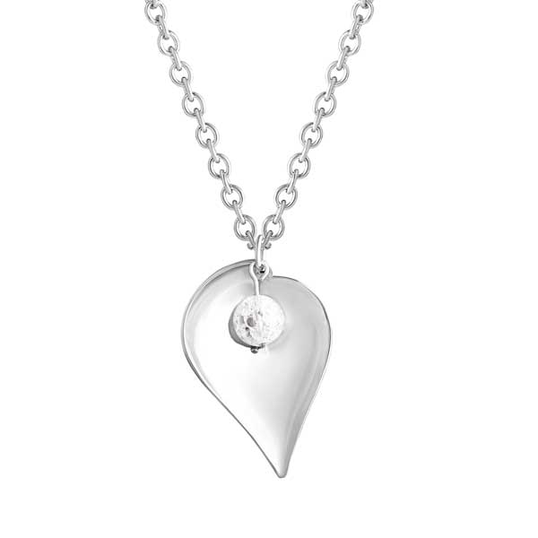 Naisten hopeinen kaulakoru kauniilla kirkkaalla kristallihelmellä. Lempikorun Lumimarja riipuksessa on kaunis lehden siluetti. Lumimarjan muoto on hieman kuppimainen, johon kirkas helmi istuu kauniisti. Lumimarja -sarjan korut muistuttavat elämän ihanista hetkistä, joita kannamme mukanamme ja joita odotamme! Hopeariipuksen koko on 25 x 38 mm. Riipuksen hopeaketjun pituus on säädettävissä pituuksiin 45 cm ja 50 cm. Kaulakoru on valmistettu laadukkaasta 925 sterling-hopeasta. Yhdistele Lumimarja riipus samaan sarjaan kuuluvien korvakorujen kanssa!