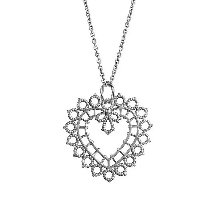Kotimainen Lempikoru Pitsisydän -kaulakoru on kaunis, romanttinen koru. Riipuksen herkkä ja yksityiskohtainen kuviointi tuo mieleen perinteisen pitsin, luoden ajattoman ja koristeellisen ilmeen. Riipuksen koko on 30 x 30 mm, ja se toimitetaan säädettävällä 45/50 cm ketjulla, joka takaa täydellisen istuvuuden. Koru on valmistettu laadukkaasta 925 sterling-hopeasta.