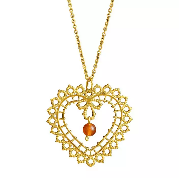 Lempikoru Pitsisydän kullattu riipus punaisella helmellä, iso