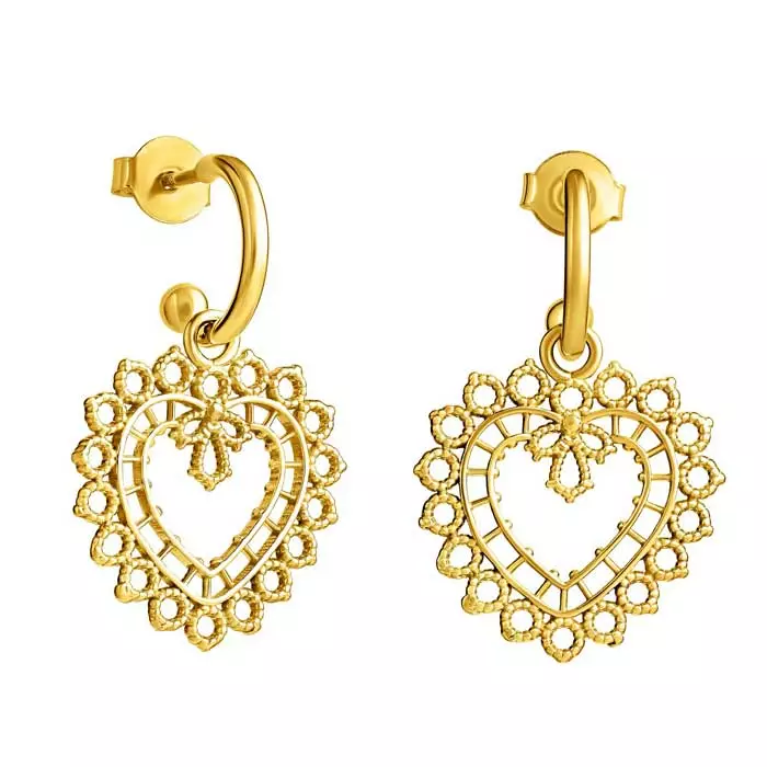 Lempikoru Pitsisydän kullatut korvarenkaat