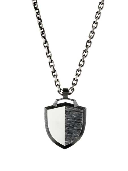Hopeasta valmistettu patinoitu miesten kaulakoru, jonka koruaiheena on kilpi. Korussa on ankkuriketju, jonka pituus on 55 cm. Voima koru sopii erityisesti miehelle, ikään katsomatta!