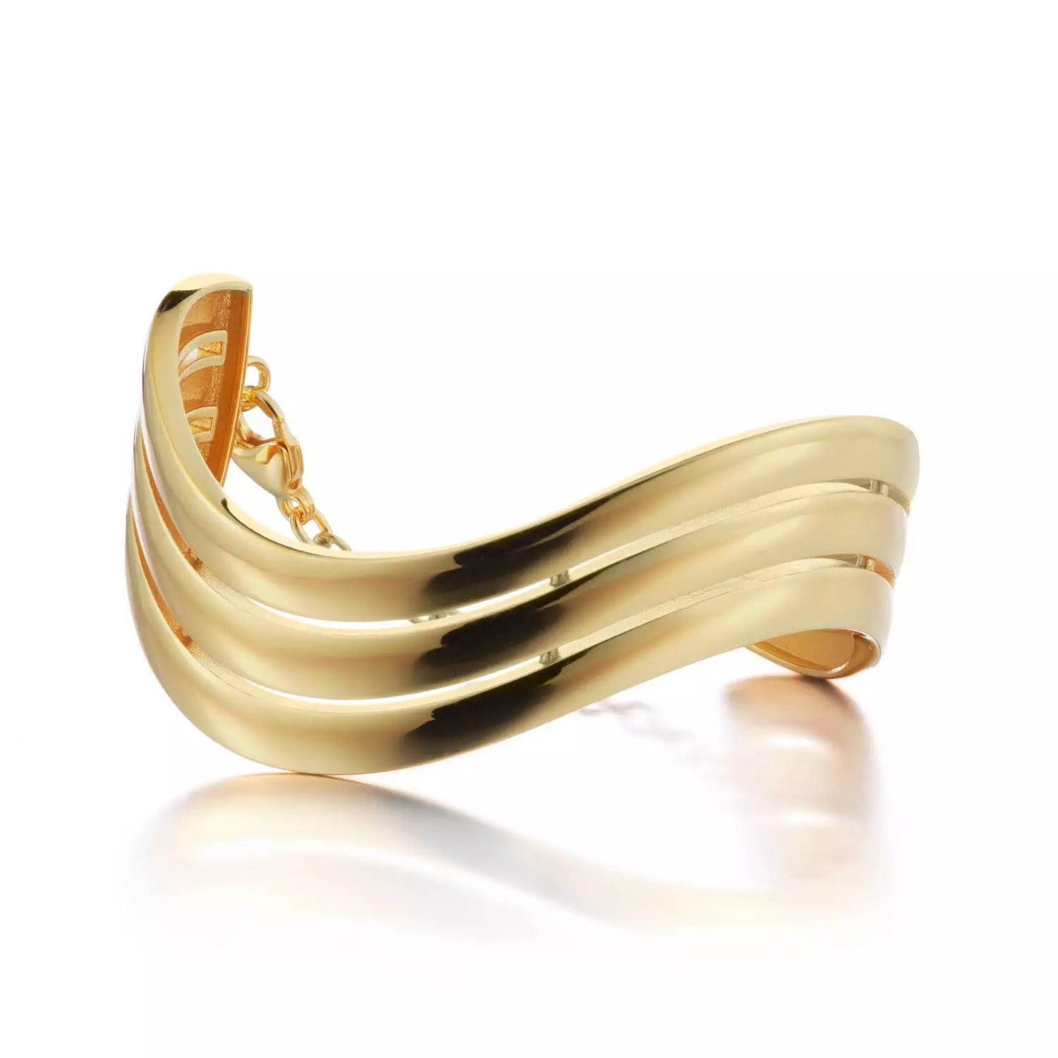 Näyttävä naisten kullattu hopeinen rannerengas. Lumoava Aaria rannekorun leveys on 18 mm ja korua on saatavilla kahdessa koossa; Ø 59 mm tai Ø 64 mm. Rannekorun takaosassa on ketju, jolla se lukitaan kiinni. Ketjun avulla rannekoru asettuu hyvin ranteeseen ja koru tuntuu mukavalta käytössä. Lumoava Aaria rannekoru on valmistettu 100-prosenttisesti kierrätetystä hopeasta.