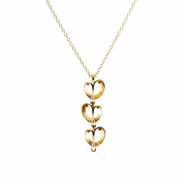 Kotimainen naisten kultainen kaulakoru, joka symboloi kauniisti uuden alkua sekä kasvua. Kolmiosainen kultainen riipus istuu kaulalle kauniisti ja on mukava käyttää.
