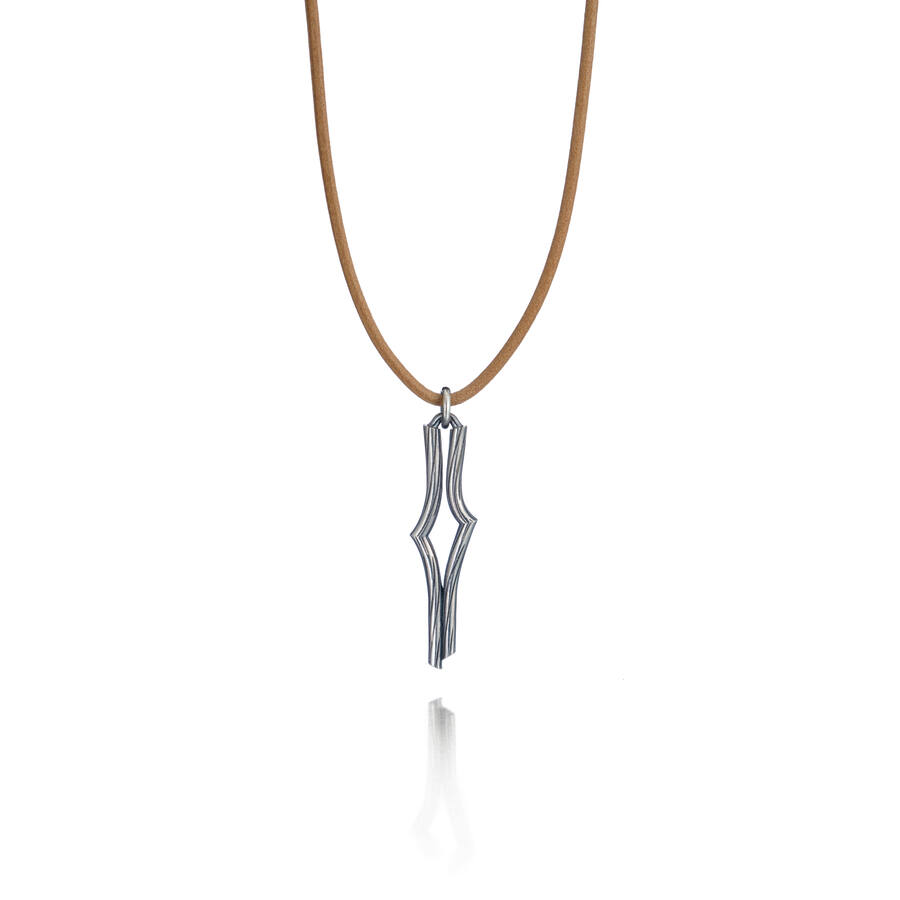 Miesten Lumoava Vaellus riipus ruskealla nahkapannalla. Tämän riipuksen hopeisen koruosan tummennettu pinta muistuttaa eläväistä puu ja pintaa ja sen vuoksi riipus sopii hyin lahjaksi luonnon ystävälle. Riipuksen koruosan leveys on 16 mm ja korkeus on puolestaan 61 mm. Tässä riipuksessa on 60 cm pitkä ruskea nahkapanta, mutta riipusta on saatavilla myös hopeaketjulla sekä mustalla nahkapannalla.