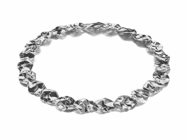 Näyttävä naisten hopeinen kaulakoru. Hopeakaulakoru kauniisti kuvioidulla pinnalla. Kaulakorun pituus on 46 cm ja koruosan leveys on 18 mm. Upea hopeinen kaulakoru juhlakoruksi!
