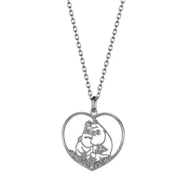 Naisten kotimainen hopeariipus. Lumoavan Muumi-koruihin kuuluva Rakkaus-riipus ihastuttaa syleilevillä Muumipeikolla ja Niiskuneidillä. Valmistusmateriaalina on laadukas 925 hopea. Tämän sydämen muotoisen hopeisen Muumi-riipuksen leveys on 24 mm ja pituus 24 mm. Ketjun pituus kaulakorussa on säädettävä 45/50 cm.