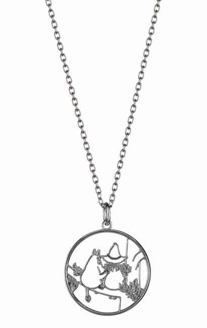 Naisten kotimainen hopeariipus. Lumoavan Muumi-koruihin kuuluva Ystävyys-riipus, johon on ikuistettu Muumilaakson parhaat ystävykset, Muumipeikko ja Nuuskamuikkunen. Valmistusmateriaalina on laadukas 925 hopea. Tämän hopeisen Muumi-riipuksen leveys on 24 mm ja pituus 26 mm. Ketjun pituus kaulakorussa on säädettävä 45/50 cm.