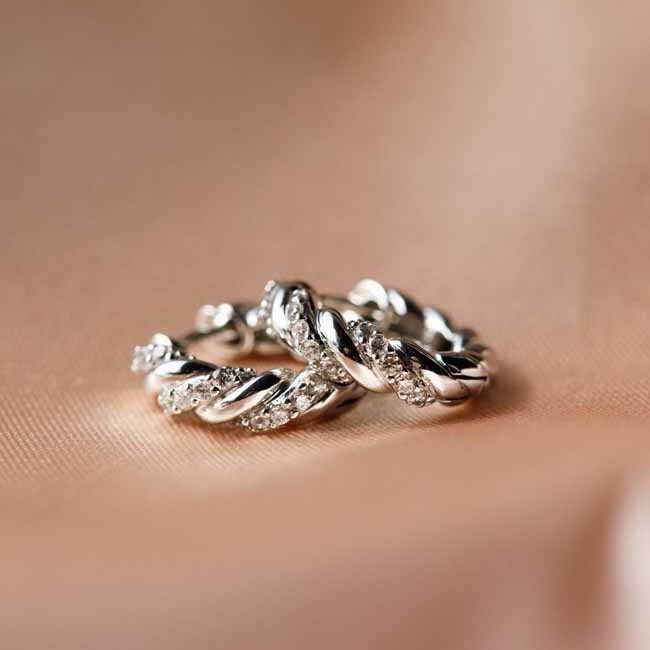Naisten hopeiset rengaskorvakorut zirkoneilla. Näihin rodinoituihin saranakorvakoruihin on istutettu kirkkaat zirkoniat. Korvakorut ovat punosta, joista yksi osa on koristeltu zirkoneilla. Korvakoruissa on saranakiinnitys. Korvakorujen materiaali on laadukas nikkelitön 925 sterling-hopea.