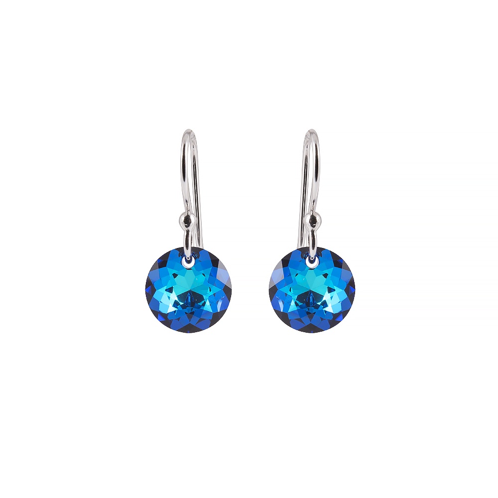 Naisten hopeiset korvakorut Swarovskin kristalleilla. Näissä rodinoiduissa korvakoruissa roikkuvat pyöreät siniset Swarovskin kristallit. Korvakoruissa on koukkukiinnitys. Kiven koko on 10 mm. Korvakorujen materiaali on laadukas nikkelitön 925 sterling-hopea.