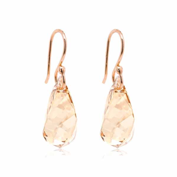 Naisten hopeiset korvakorut shampanjan sävyisillä kristalleilla. Näissä ruusukullatuissa hopeakorvakoruissa on kaunis sävy. Koruosan koko on 18 mm. Korvakoruissa on koukkukiinnitys. Korvakorujen materiaali on laadukas nikkelitön 925 sterling-hopea.