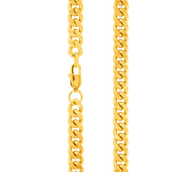 Leveä kultadublee panssariketju miehelle. Teräspanssariketjun leveys on 8 mm ja se on valmistettu kestävästä ruostumattomasta teräksestä. Pituus on valittavissa, 50 tai 55 cm.