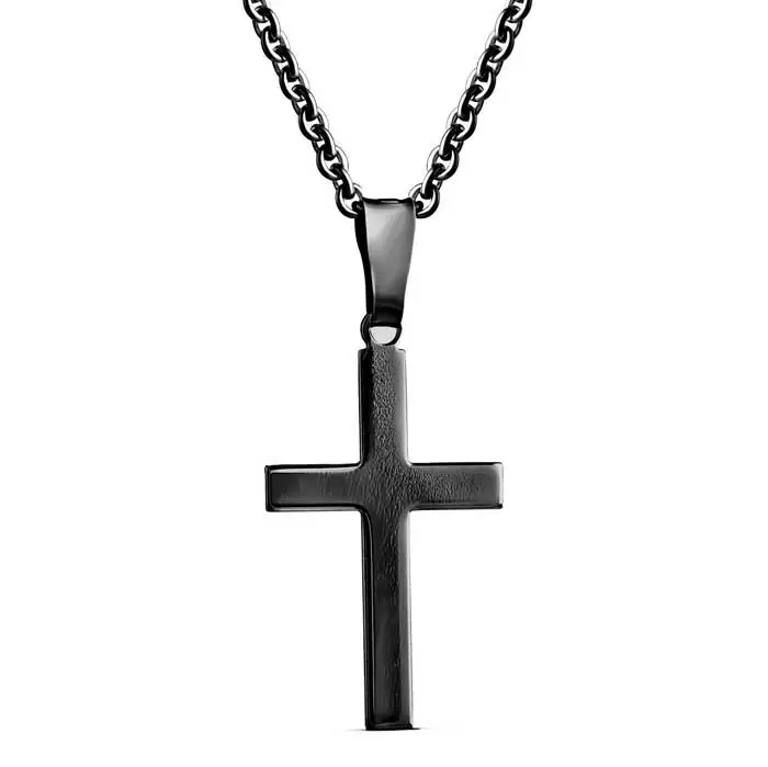 Klassisen pelkistetty musta hopeinen ristiriipus. Kookkaan hopearistin korkeus on 22 mm ja leveys on 13 mm. Hopearistin ketju on kätevästi säädettävissä pituuksiin 45 cm ja 50 cm. Materiaali on laadukas 925 sterling-hopea, joka on tummennettu.
