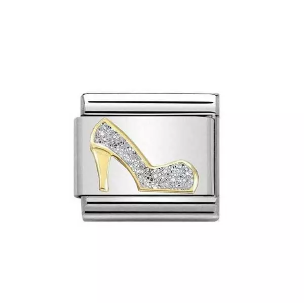 Nomination Classic Gold sarjan glitter korkokenkä-pala. Koruosa on 18 karaatin keltakultaa.