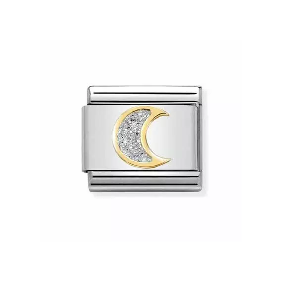 Nomination Classic Gold sarjan glitter kuu-pala. Koruosa on 18 karaatin keltakultaa.
