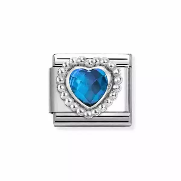 Nomination Classic Silvershine sarjan kaunis pala sydämen muotoisella sinisellä korukivellä. Sydämen muotoisen kiven koristeellinen reunustus on 925 sterling-hopeaa. Klassinen sydän sopii koristamaan monenlaista Nomination-ranneketta!