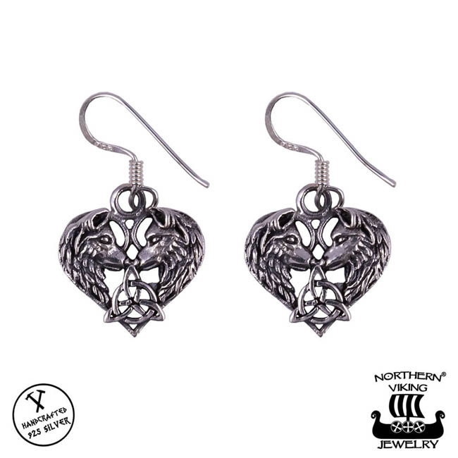 Northern Viking Jewelry® 925-Hopea Korvakorut Heart Wolf
