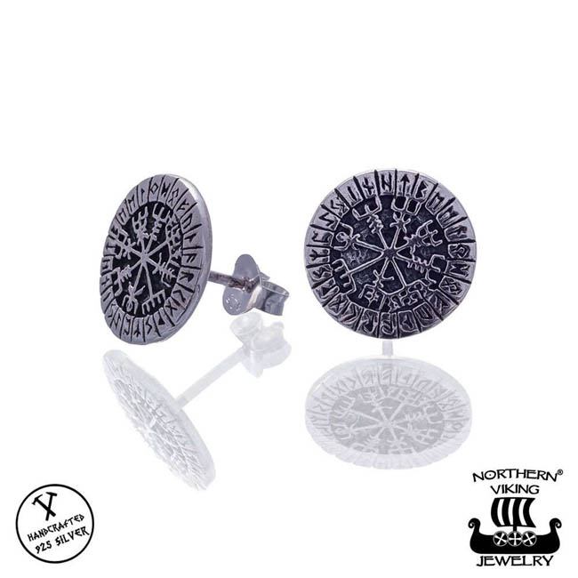 925-hopeasta valmistettu Northern Viking Jewelry® Vegvisir-Korvakorut.