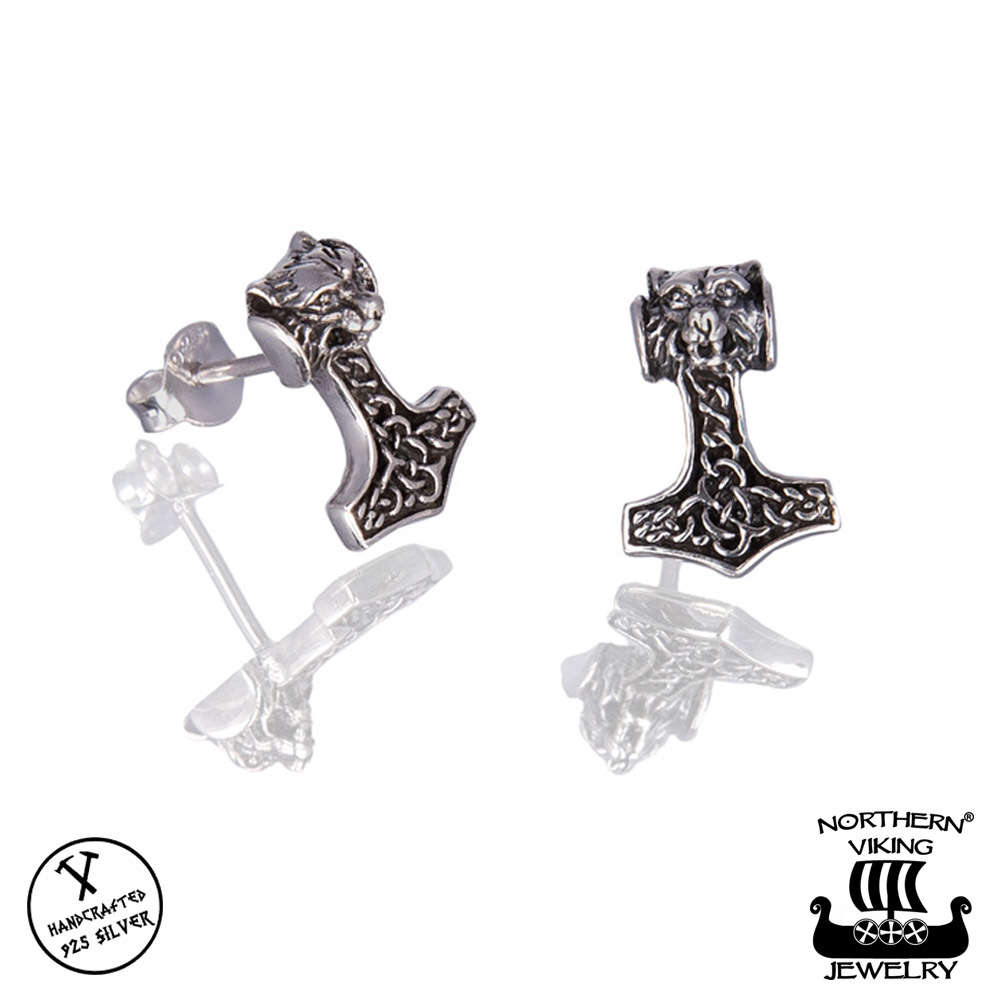Northern Viking Jewelry® 925-Hopea Korvakorut "Wolf Head Thorin Vasara"