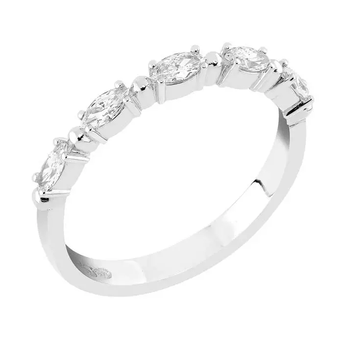 Sandberg Kastepisara timanttisormus, jossa säkenöivät viisi kappaletta markiisihiontaisia timantteja yhteensä 0,28 ct painossa, laatuluokituksilla G-vs. Timantit on istutettu kauniisiin 4-kyntisiin istutuksiin. Tämän valkokultaisen sormuksen rungon leveys on noin 2,25 mm ja rungon profiili on tynnyri. Materiaali on laadukas 14 karaatin valkokulta.