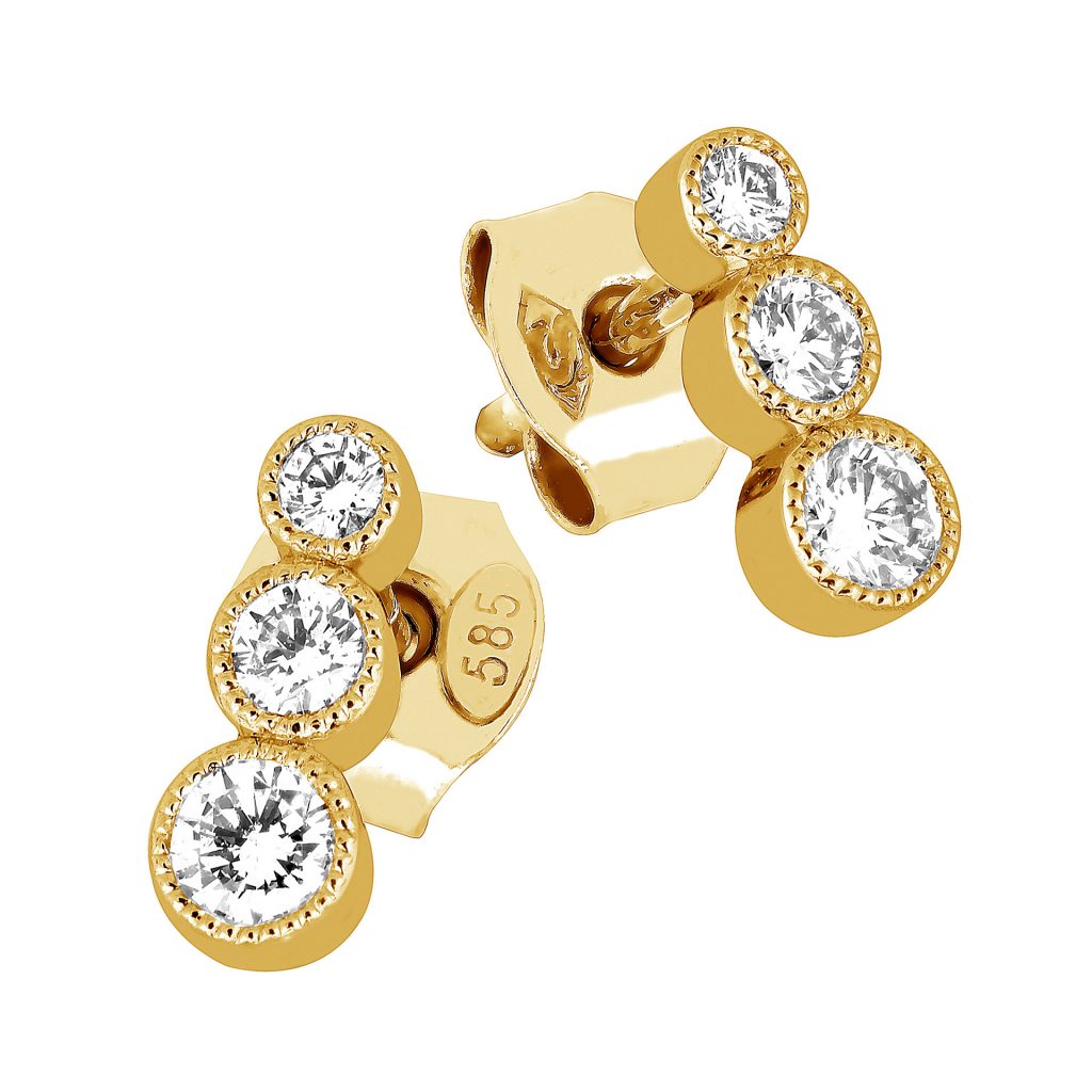 Sandbergin kauniit Suvituuli timanttikorvakorut. Keltakultaisiin nappikorvakoruun on istutettu kolme kappaletta säihkyviä timanttia ja yhden korvakorun timanttien paino on 0,12 ct. Timanttien koko suurenee ylhäältä alaspäin. Timantit on istutettu umpi-istutuksiin, joiden reunoja koristaa kaunis ja herkkä krysanttireuna. Korvakorujen timanttien yhteispaino on 0,24 ct ja korvakorut on valmistettu laadukkaasta 14 karaatin keltakullasta.