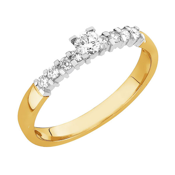 18 karaatin keltakullasta valmistettu timanttisormus. Sormuksen rungon leveys on noin 2,4 mm ja rungon profiili on tynnyri. Sormukseen on istutettu 9 kappaletta säihkyvää timanttia, jotka ovat yhteispainoltaan 0,30 ct. Istutus on valkokultaa. V-719 sormus on yhteensopiva esimerkiksi Tuulenvire ja Aamurusko-malliston sormuksien vierelle.