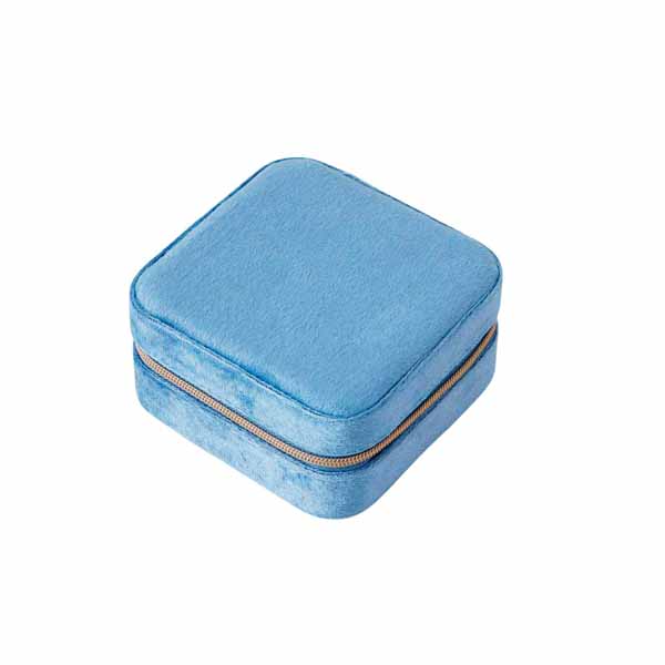 Kaunis ja kompakti sininen samettinen korurasia. Rasian sisus on pehmeää beigen sävyistä kangasta, jonka hellässä huomassa rakkaat korusi pysyvät suojassa naarmuilta. Rasian sininen pinta on tyylikästä ja ihanan pehmeää samettia. Korulippaasta löydät omat paikat niin kaulakoruille, rannekoruille, sormuksille kuin korvakoruillekin. Korulaatikon sisältä löytyy lokerikko, jolla voit jakaa korurasiaa tarpeen mukaan neljään tai kahteen osaan ja jonka voit tarvittaessa myös kokonaan irrottaa, jos tarvitset isomman yhtenäisen tilan esimerkiksi rannekorulle. Rasian sisällä on myös käytännöllinen peili. Neliön muotoisen korurasian koko on 10 x 10 x 5 cm ja se suljetaan kätevästi vetoketjulla. Kätevän kompaktin kokonsa puolesta voit ottaa korurasian myös mukaan matkalle matkakorurasiaksi. Korurasia on myös ihana lahjaidea.
