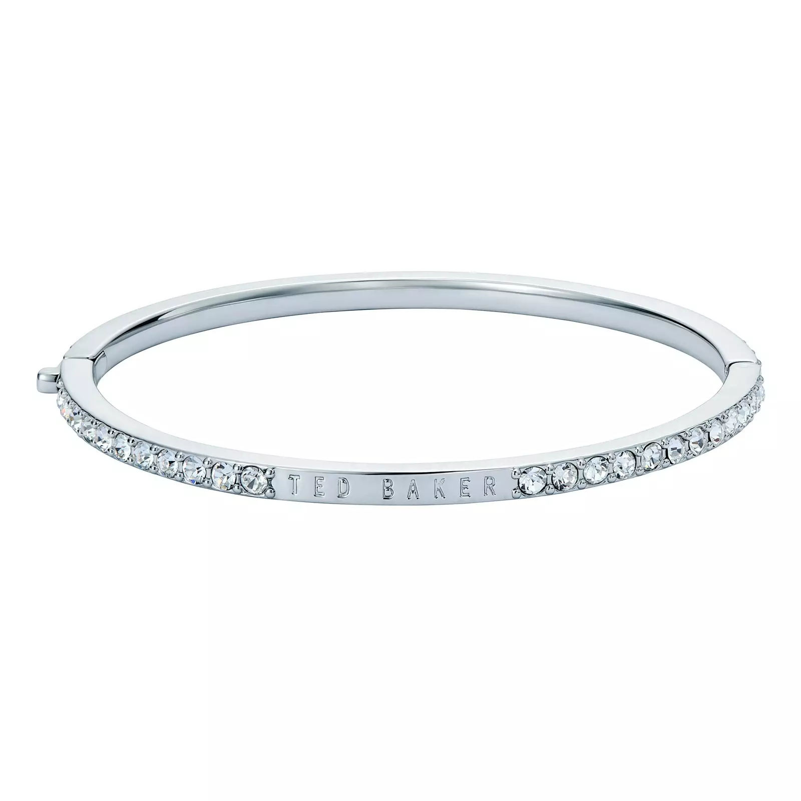 Naisten Ted Baker Claudia rannerengas. Pelkistetyn kaunis naisten hopean sävyinen rannekoru kirkkailla korukivillä ja Ted Baker -logokaiverruksella.