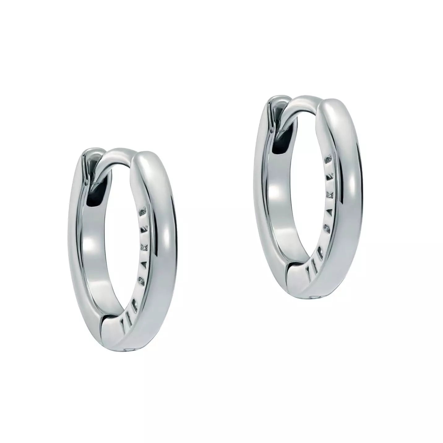 Naisten Ted Baker korvakorut hopean sävyssä. Klassiset korvarenkaat Ted Baker -logokaiverruksella ja kätevällä saranakiinnityksellä.