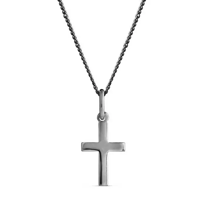 Klassisen pelkistetty ja sirosti muotoiltu tummennettu hopeinen ristiriipus. Hopearistin korkeus on 19 mm ja leveys on 15 mm. Hopearistin ketju on kätevästi säädettävissä pituuksiin 45 cm ja 50 cm. Materiaali on laadukas 925 sterling-hopea, joka on tummennettu.