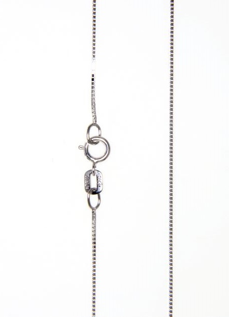 Naisten 14 karaatin valkokultainen riipusketju. Valkokultaketju on malliltaan venetsiaketju, joka on profiililtaan neliön muotoinen. Sen suorat sivut heijastavat kauniisti valoa.