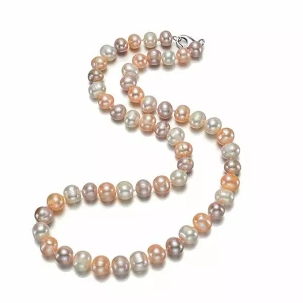 Värikäs helmikaulakoru 9 mm helmillä Hopeinen värikäs helminauha aidoilla makeanveden viljellyillä helmillä. Vaaleat makeanveden helmet ovat kooltaan noin 9 mm ja niiden muoto on hieman ovaali.... Lue lisää